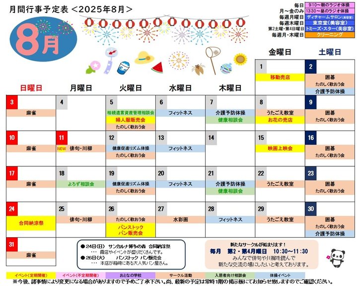 *2025年8月 月間予定表*