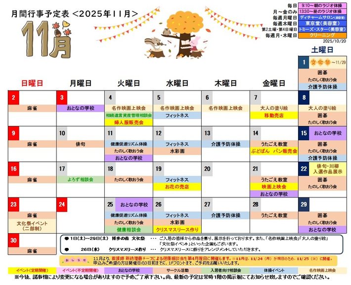 また、11月はサンカルナ博多の森 文化祭シーズンです。