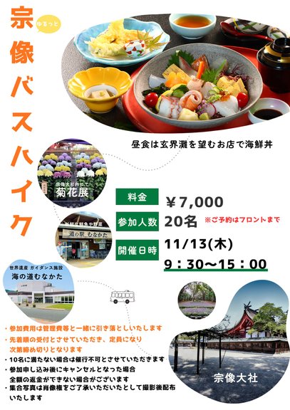 午後は 「海の道むなかた館」、「宗像大社」、そして見事な菊が並ぶ **「菊花展」**を見学。あっという間に時間が過ぎ、楽しい思い出とともに帰路につきました。