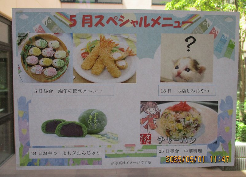 端午の節句メニューではオムライス、中華料理ではレタスチャーハンをご提供します。当日が楽しみです。