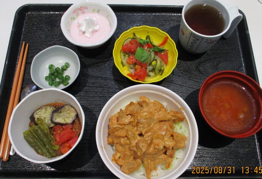 トルコ料理の代表作である「ケバブ」、羊肉を使用することが多いそうですが、憩では鶏肉を使用して「ケバブ丼」をご提供しました。お肉が柔らかくて美味しかったです。お豆のスープも美味しかったです。