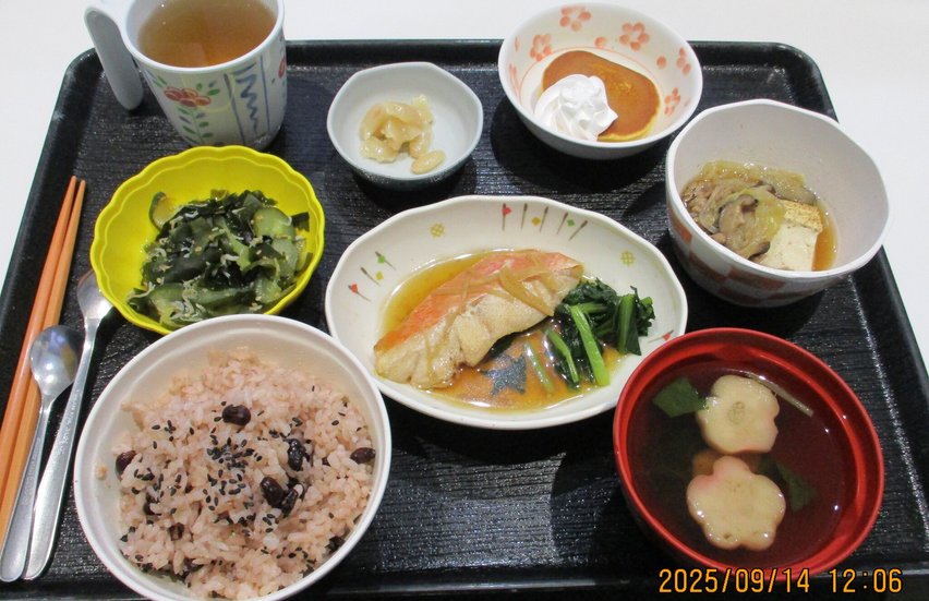 入居者さまのご長寿をお祝いし、日頃の感謝を込めてお祝い膳をご用意しました。赤飯、金目鯛の煮付け、すき焼き煮などの料理をご覧になり、「豪華だね」、「今日はいい日ね」等と感嘆の声が次々と上がっていました。喜んでいただけて嬉しいです。