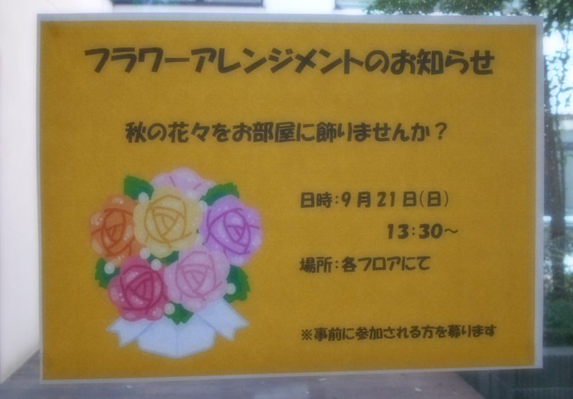 9月21日(日)にフラワーアレンジメントを行います。綺麗な秋の花々を一緒に生けましょう。