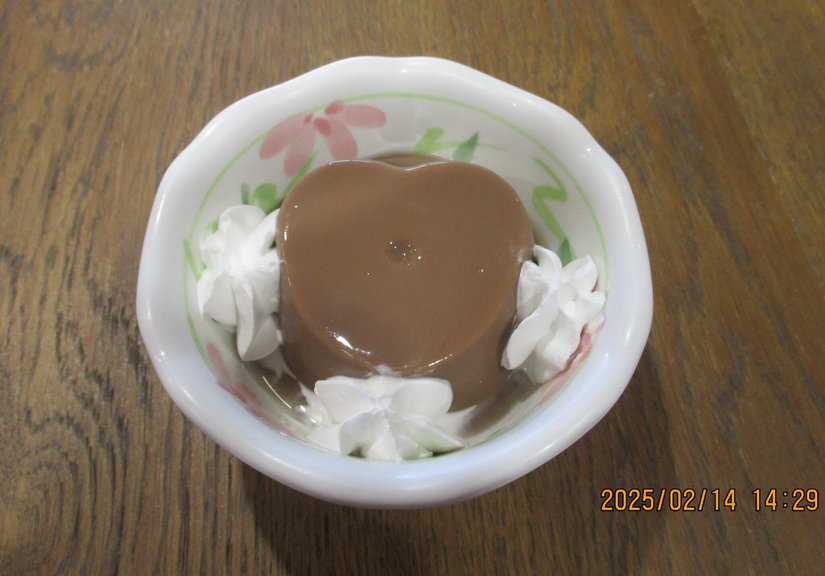 先日2月14日はバレンタイン、おやつにハート型のチョコレートプリンをご用意しました。入居者様に「昔はチョコレートをたくさんもらったのですか」と質問すると、「奥さんから手作りのチョコケーキをもらってたよ」と照れくさそうに教えてくださりました。素敵な思い出話しを聞くことができました。