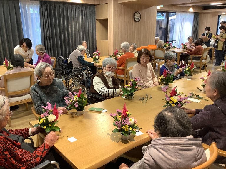 できあがったアレンジを手に「お部屋に飾るのが楽しみね」と笑顔がこぼれていました。