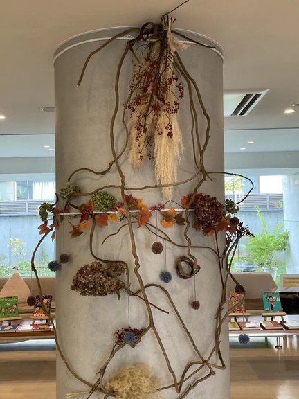 あるスタッフが、草刈り作業の度に集めた”葛のツル”をロビーの柱に森の様につたわせてくれくれました。
