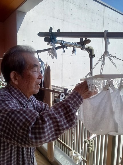 とても丁寧にタオル干しをお手伝いして下さったお父様(^O^)