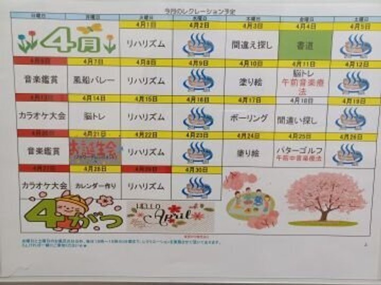 そんな桜を含めた花たちが咲く4月のレクリエーションを