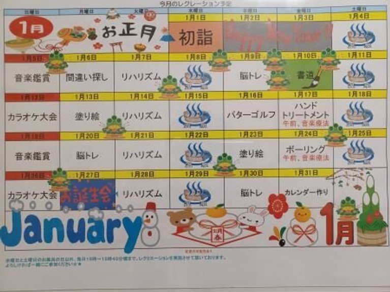 1月のレクリエーション予定表
