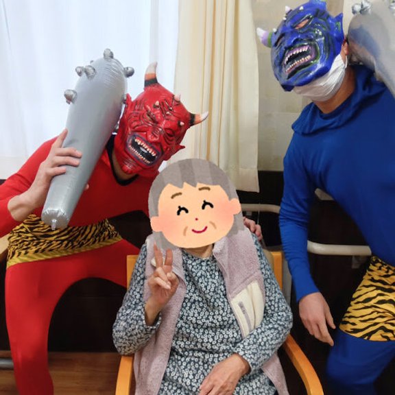 怖い赤鬼さん青鬼さんが利用者様のお部屋に来ました。