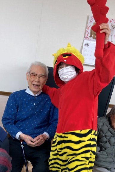 今年も鬼さんが来てくれました。仲良くポーズ✌