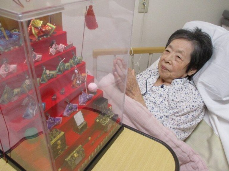こちらは職員のおばあ様の手作りのひな人形との事で、飾らせていただきました♪