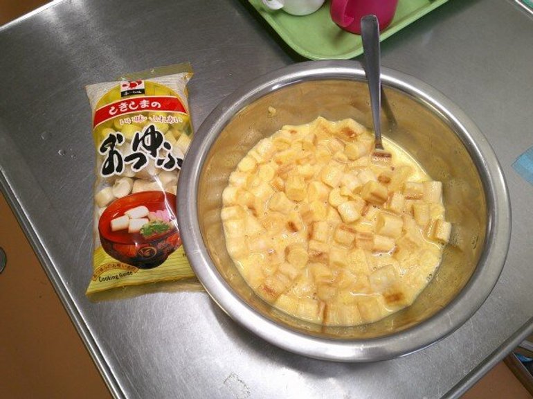 食事で余ったおつゆ麩に卵液をしみしみに染みこませて~♪