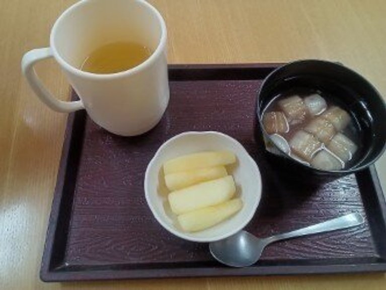 先日のひな祭り会で余ったあんこがあったので、お汁粉風にしました(*'▽')