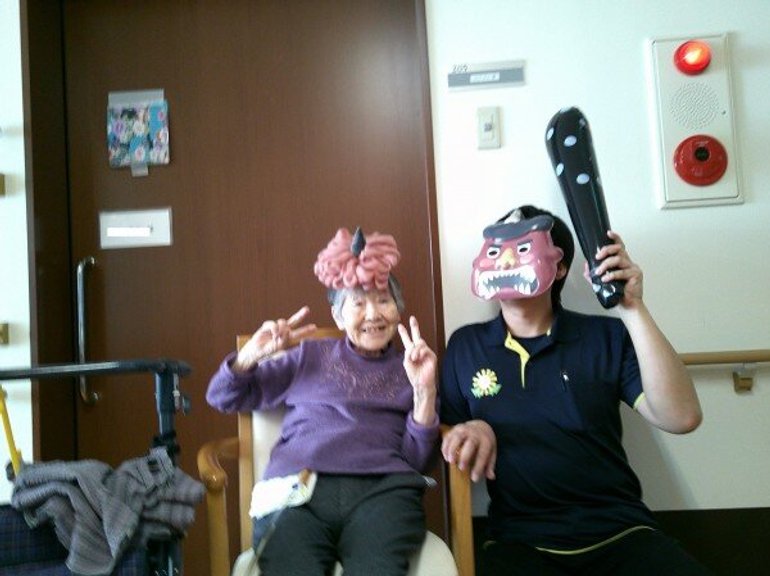 今回のレクでは皆様に鬼のカチューシャを着けていただき記念撮影会を行いました♥♥♥