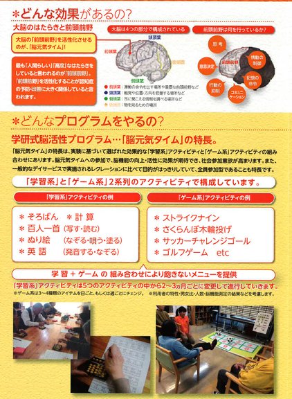 デイサービスのプログラムとして提供しており、学研能力開発部が開発したオリジナル「脳活性プログラム」です!