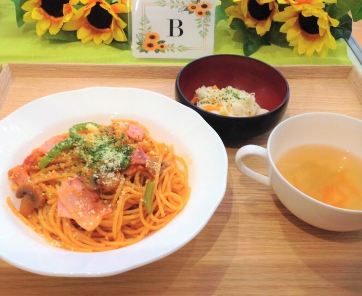 B: ナポリタン・コールスローサラダ・スープ
