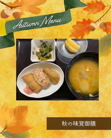#秋の味覚#いなり寿司#ごま和え#豚汁#フルーツ