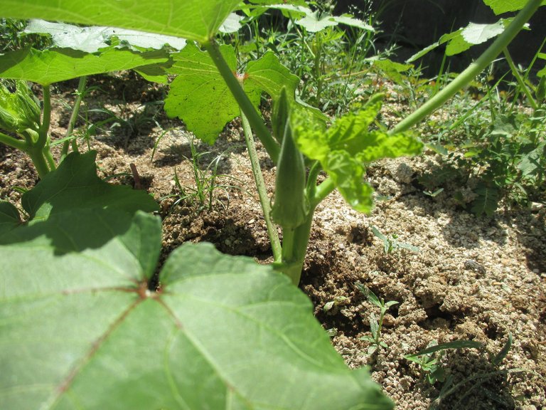入居者様のご家族から頂いたねぎとオクラを植えました。そのオクラが収穫出来ました。
