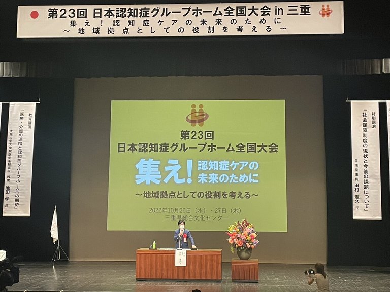 10月26日・27日に開催されました、グループホーム全国大会に参加してきました。全国大会では、各地域の積極的な活動をされているグループホームの代表職員が、自施設の工夫・努力されている事を研究発表されていました。熱心な施設の取り組みを拝見し、参加した職員ともども、改めてよいサービスを行えるようと決意しました。 ^^)