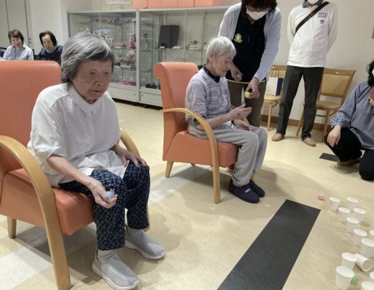 上手くボールがカップに入ったかな?と思いきやバウンドして出てきてしまったりなど…ピンポン玉ならではの面白さもあり、皆さんとても盛り上がって
