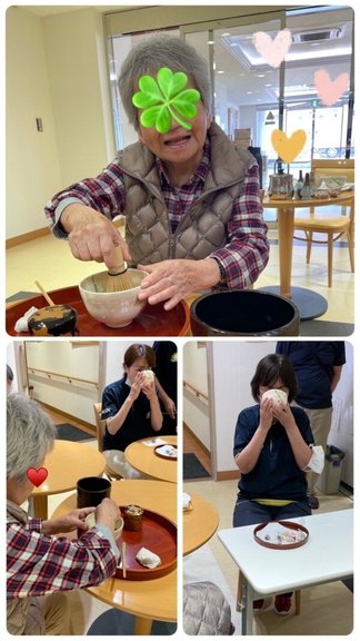 入居者様(先生)自ら茶筅を振り抹茶を点てて下さいます