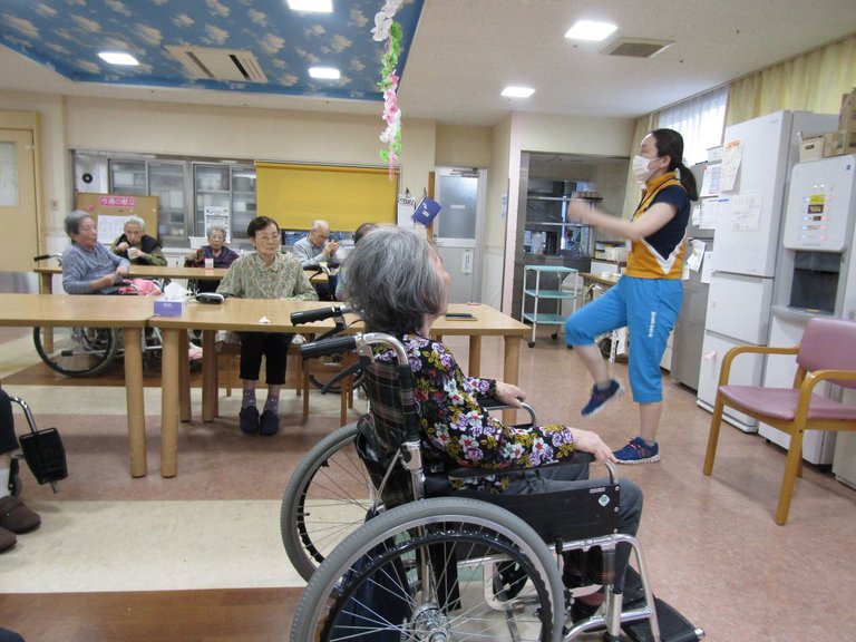 施設では、ティップネスから先生をお招きして、ストレッチなどの体操を行いました。