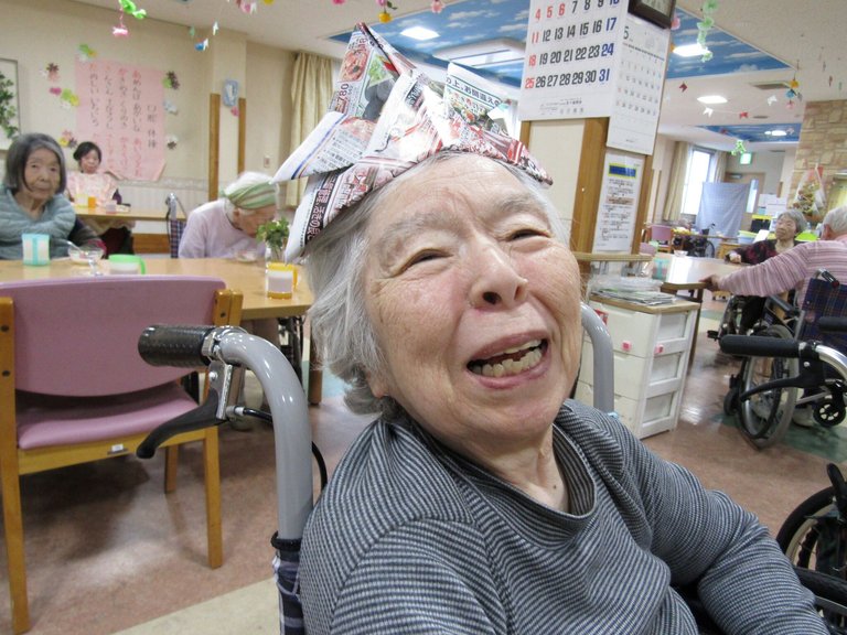 ご入居者の皆様の頭に乗せて、1枚、写真を撮らせて頂きました。
