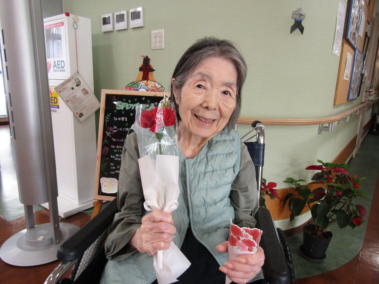 お写真はご面会された、ご入居者様のY様。赤いカーネーションとお手紙を頂きました♡