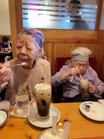 お写真はクリームコーヒーを味わうご入居者様のA様とH様。