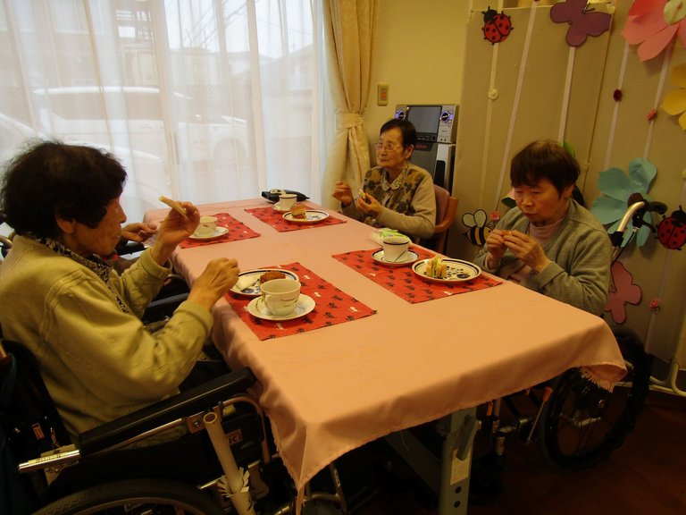 施設では、歌声喫茶を行いました。東浦和の歌姫&ギタリストのS看護師のイベント。今回は、歌声の前の喫茶をご紹介。