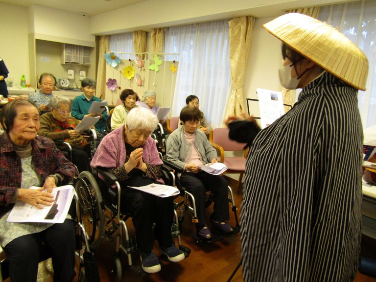 施設では、歌声喫茶を行いました。今回は、歌声部門をご紹介。
