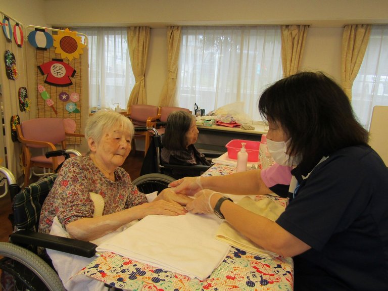 施設では、ハンドリフレを行いました。
