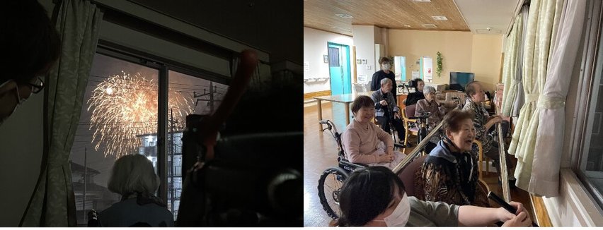 施設では先日あった、近隣の花火大会を楽しむ事が出来ました‼