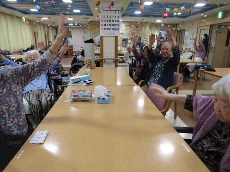 生活の空き時間を活用して、臨時開催‼食堂にいらっしゃるご入居者様を集めて、これから始まりますよ☆