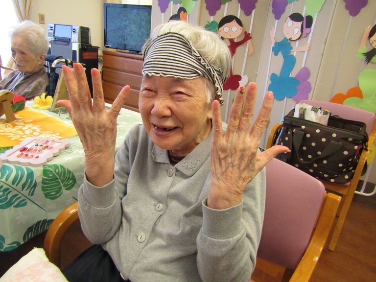 ネイルアートの先生がお越しになり、ご入居者様の爪を美しく施術してくださります❋