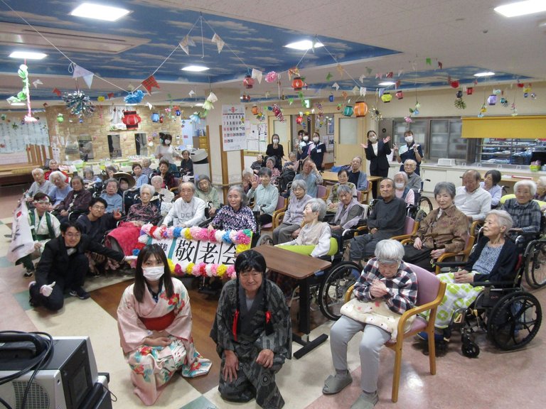 今年もおめでたいお年の方を代表して、賞状のお祝いと、東浦和若手職員による入魂⁈のショートショー⁉。最後にこの、記念写真をご入居者様全員でパシャリ☆