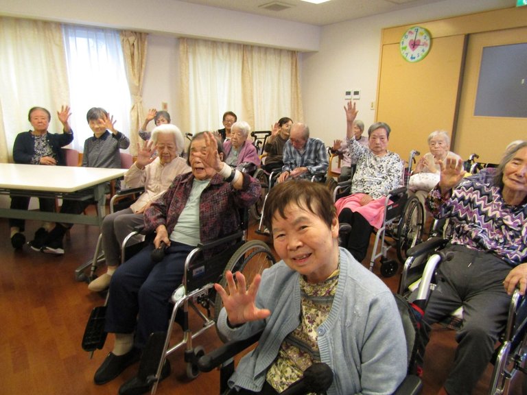 今回も大勢のご入居者様にお集まり頂きました‼どうぞ、マイクを握って歌ってくださいね♬