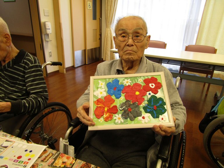 施設では、粘土でちぎり絵:ハイビスカスを咲かせましょう‼を行いました。