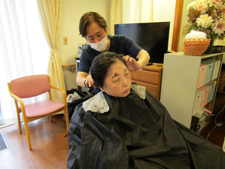施設では、訪問理美容がございました。マロンさんがお越しになり、ご入居者様の整容を行ってくださります。