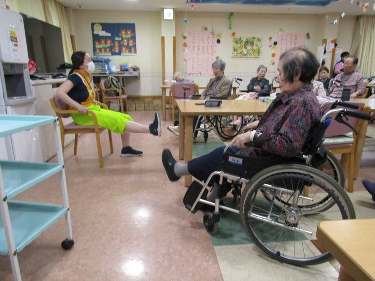 施設では、ティップネスがございました。ティップネスからインストラクターの先生がお越しになり、ご入居者様に体操などを教えてくださります☆