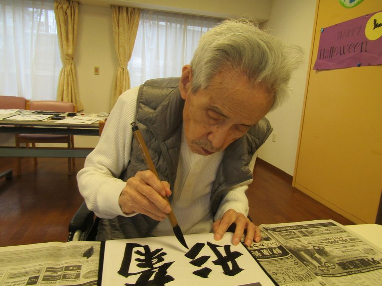 お写真はご入居者様のN様。書道には力を入れているご入居者様。