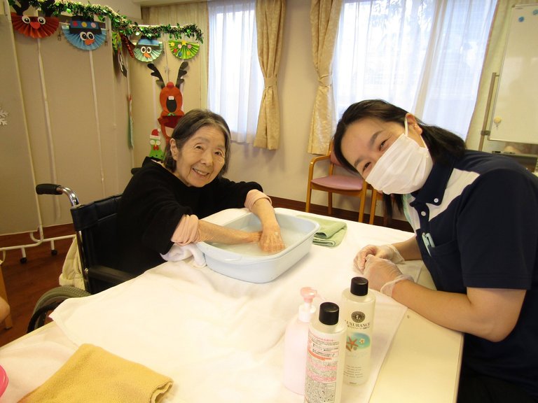 施設では、ハンドリフレを行いました。