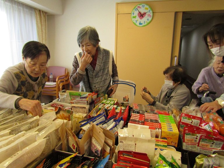 お写真は、買い物を楽しむご入居者様方。‥話し声が聞こえてきそうでしょ⁇