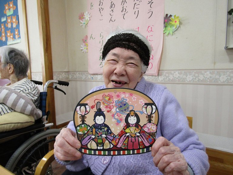 施設では、シールアートで、ひな祭りの飾りを作って頂きました!