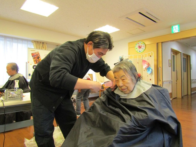施設では、訪問理美容『マロン』さんが、ご入居者様のカットなどの整容を行いました。
