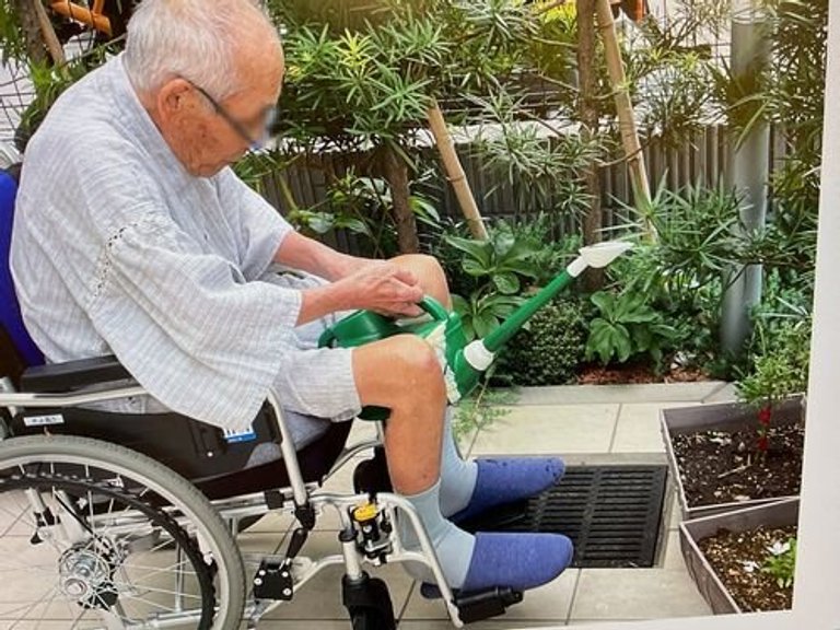 テラスに植えたお花にジョーロでお水を上げてくれました