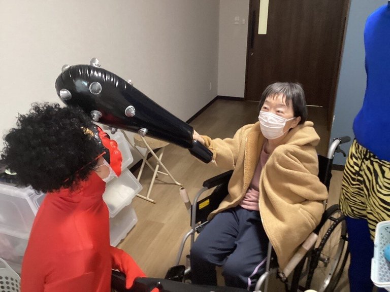 ご入居者様の居室を赤鬼:蛇草、青鬼:滝野が訪室させていただきました。赤鬼も青鬼もご入居者様のご健康とご多幸、そして施設の平穏を祈念しながら、お部屋をお伺いしました。