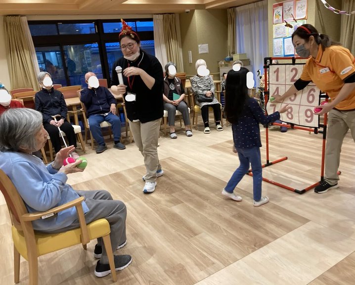 園児たちとのクリスマス会に、入居者様のお孫様によるクリスマスコンサート、駐車場内で行う🍊狩りに・・