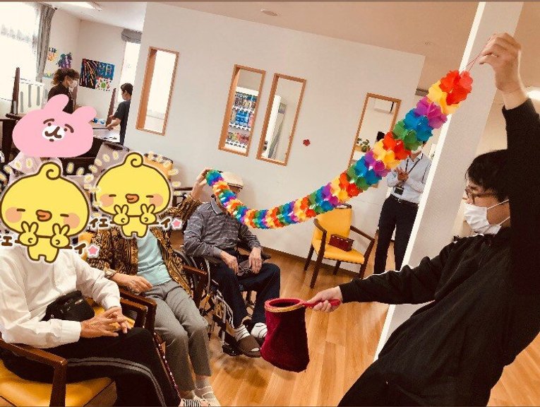 サイコロが消えたり、美しい花が咲いたり...マジシャンの軽快なおしゃべりと一緒に、会場は驚きと笑い声に包まれました。「どうやってるの?」「すごいね!」という声が飛び交い、童心に返ったような皆さまの表情がとても素敵でした。